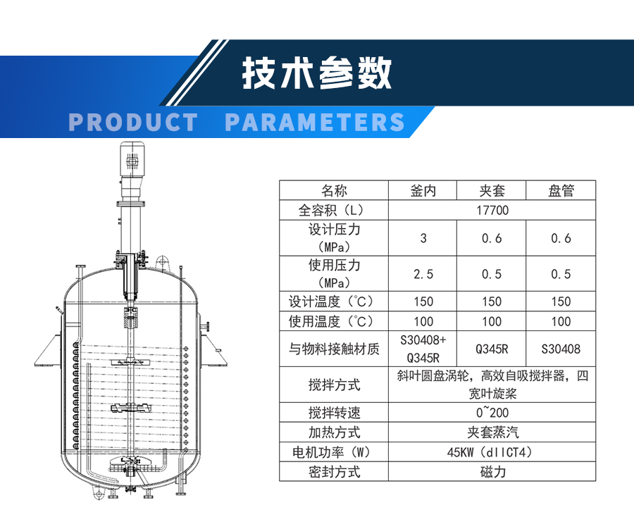 生產(chǎn)型磁力密封反應釜 - 非標定制參數(shù)