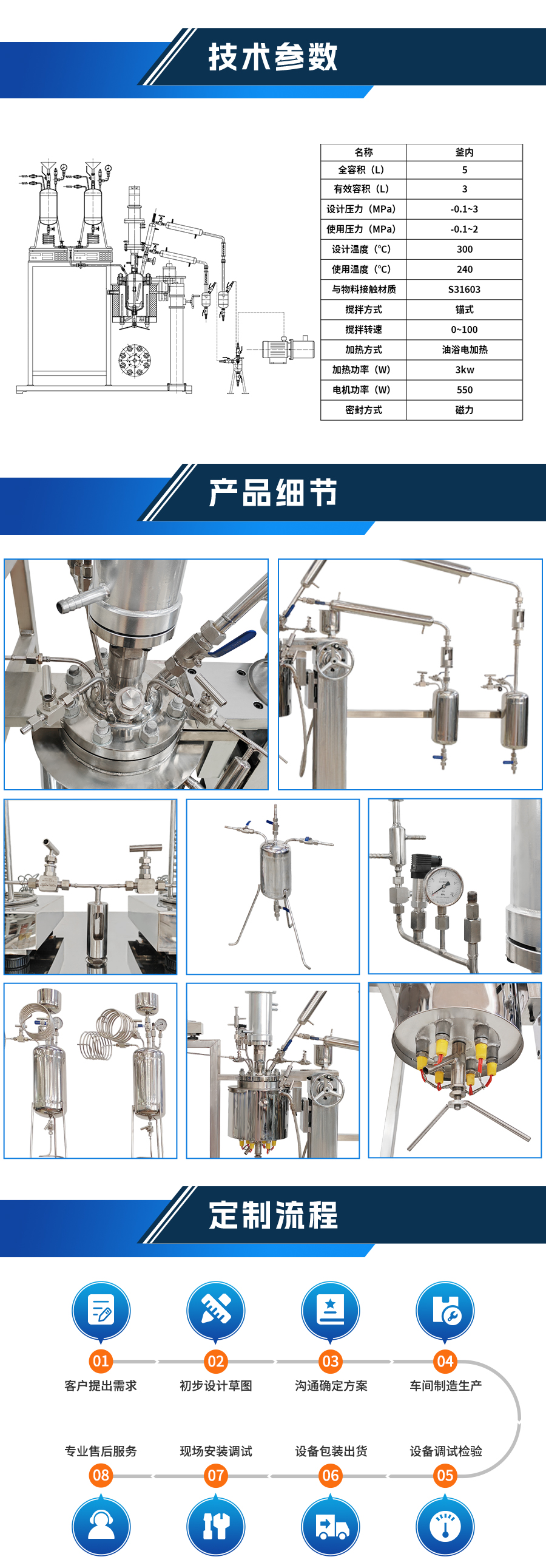 高溫酯化縮聚磁力實驗室反應(yīng)釜 - 非標(biāo)定制參數(shù)