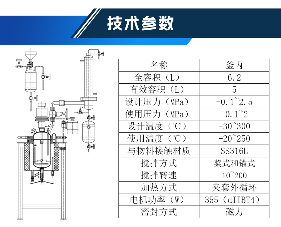| 實(shí)驗(yàn)室反應(yīng)釜規(guī)格及技術(shù)參數(shù) | ||||
