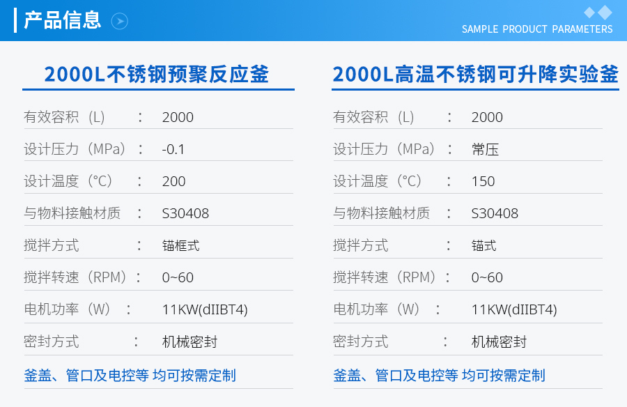 | 其他附件 | 如果用戶在釜蓋、釜體開口、內(nèi)部結(jié)構(gòu)、壓力高低、攪拌槳葉、及增加其他輔助裝置(如冷凝回流裝置、冷凝器、恒壓加料罐、接收裝置)等有特殊要求,可完全按用戶的要求加工制造。 | ||||||