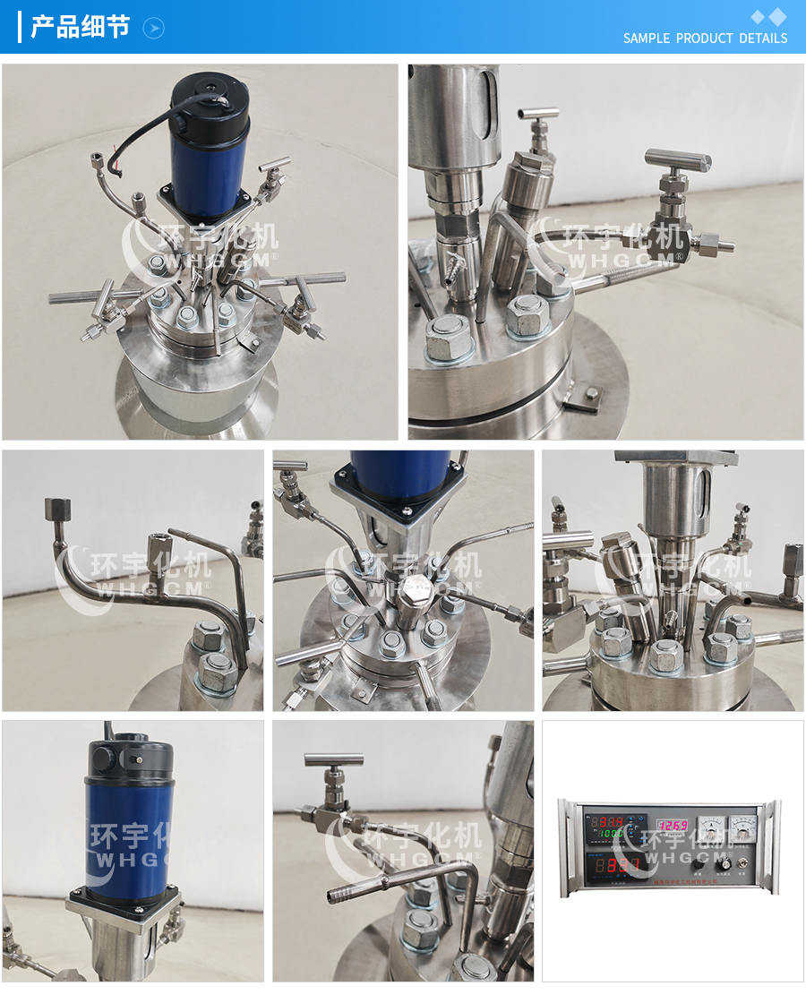 常規(guī)釜蓋開口 氣相口配針形閥,液相口配針形閥及釜內(nèi)插底管,固體加料口配絲堵,測(cè)控溫口配鉑電阻,壓力表安全爆破口配壓力表及安全防爆裝置,釜內(nèi)冷卻盤管進(jìn)、出口配水咀