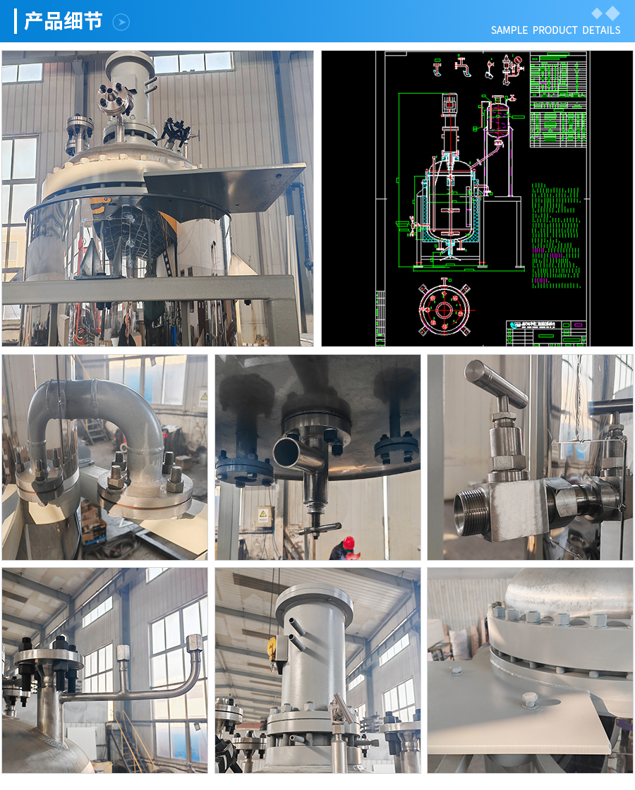 其他附件 如果用戶在釜蓋、釜體開口、內(nèi)部結(jié)構(gòu)、壓力高低、攪拌槳葉、及增加其他輔助裝置(如冷凝回流裝置、冷凝器、恒壓加料罐、接收裝置)等有特殊要求,可完全按用戶的要求加工制造