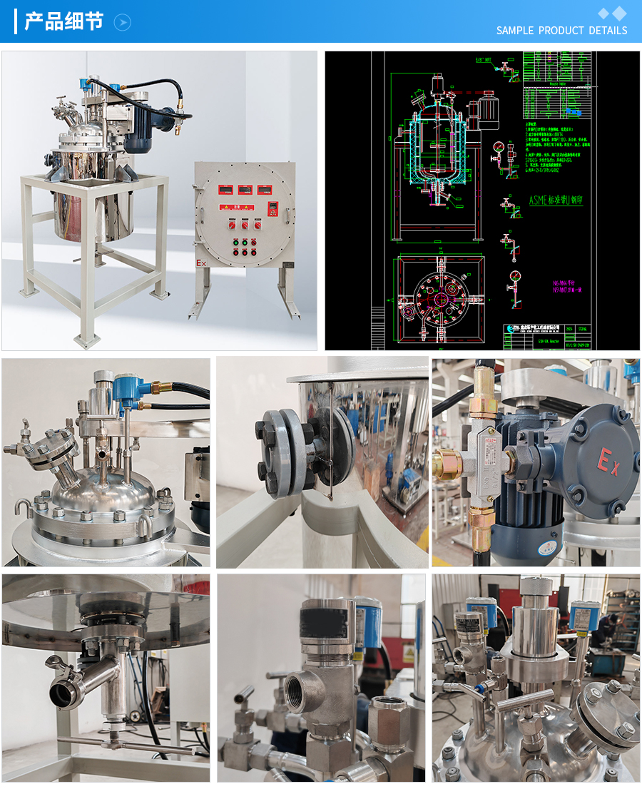 其他附件 如果用戶(hù)在釜蓋、釜體開(kāi)口、內(nèi)部結(jié)構(gòu)、壓力高低、攪拌槳葉、及增加其他輔助裝置(如冷凝回流裝置、冷凝器、恒壓加料罐、接收裝置)等有特殊要求,可完全按用戶(hù)的要求加工制造